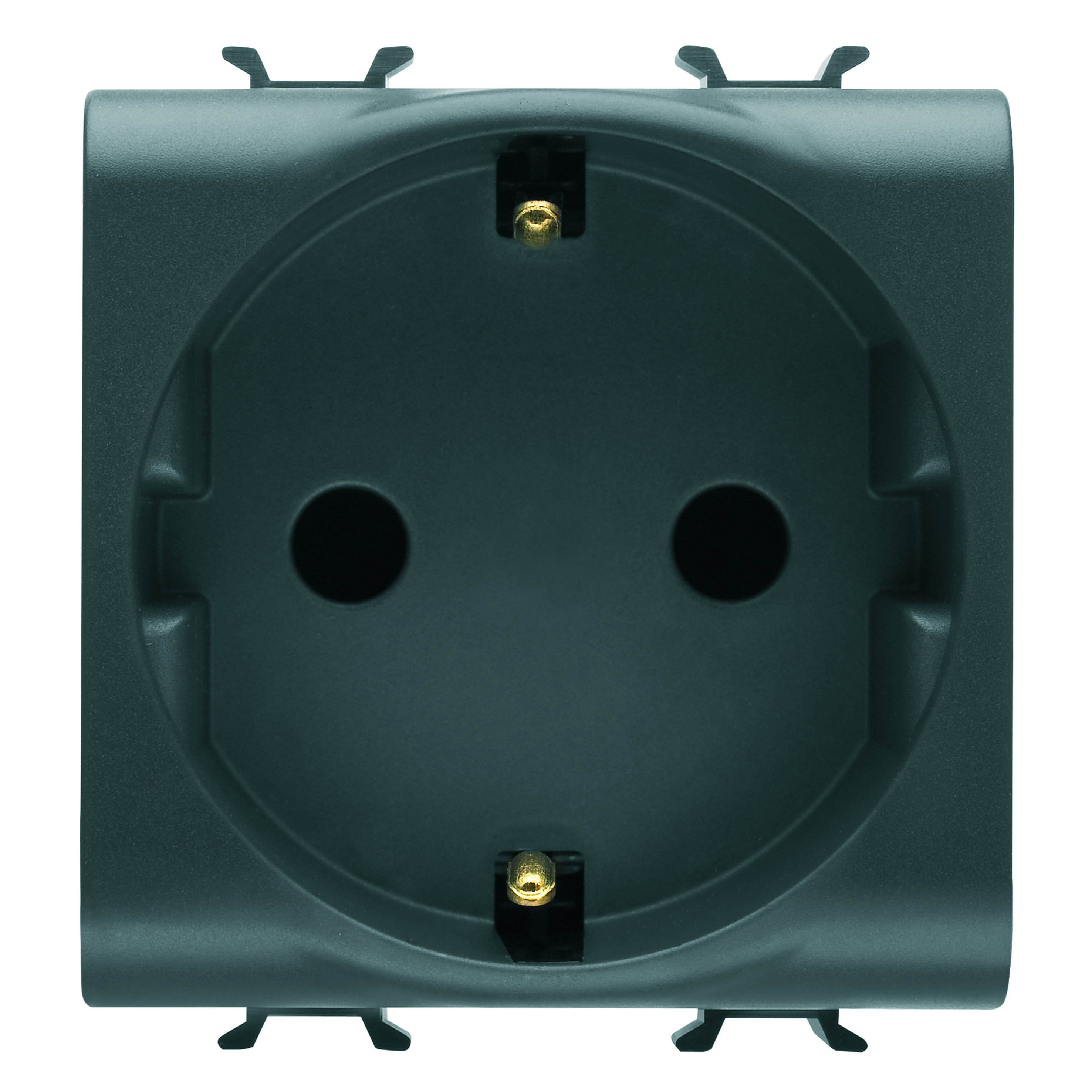 Chorus – serie civile Dispositivi modulari Nero – I dispositivi modulari Chorus offrono la possibilità di creare infinite combinazioni frutti-placche, grazie ad una gamma completa in grado di soddisfare ogni esigenza estetica, funzionale ed installativa. Colori e finiture: nero satinato, elegante e di classe. Funzioni illimitate in spazi ridotti: la serie Chorus si compone di tasti da 1, 2 e 3 moduli per ottimizzare gli spazi secondo le necessità. Aggancio frontale: l’aggancio frontale rende molto più semplici e rapide le operazioni di montaggio e di sgancio dei frutti, effettuabili senza bisogno di rimuovere il supporto.