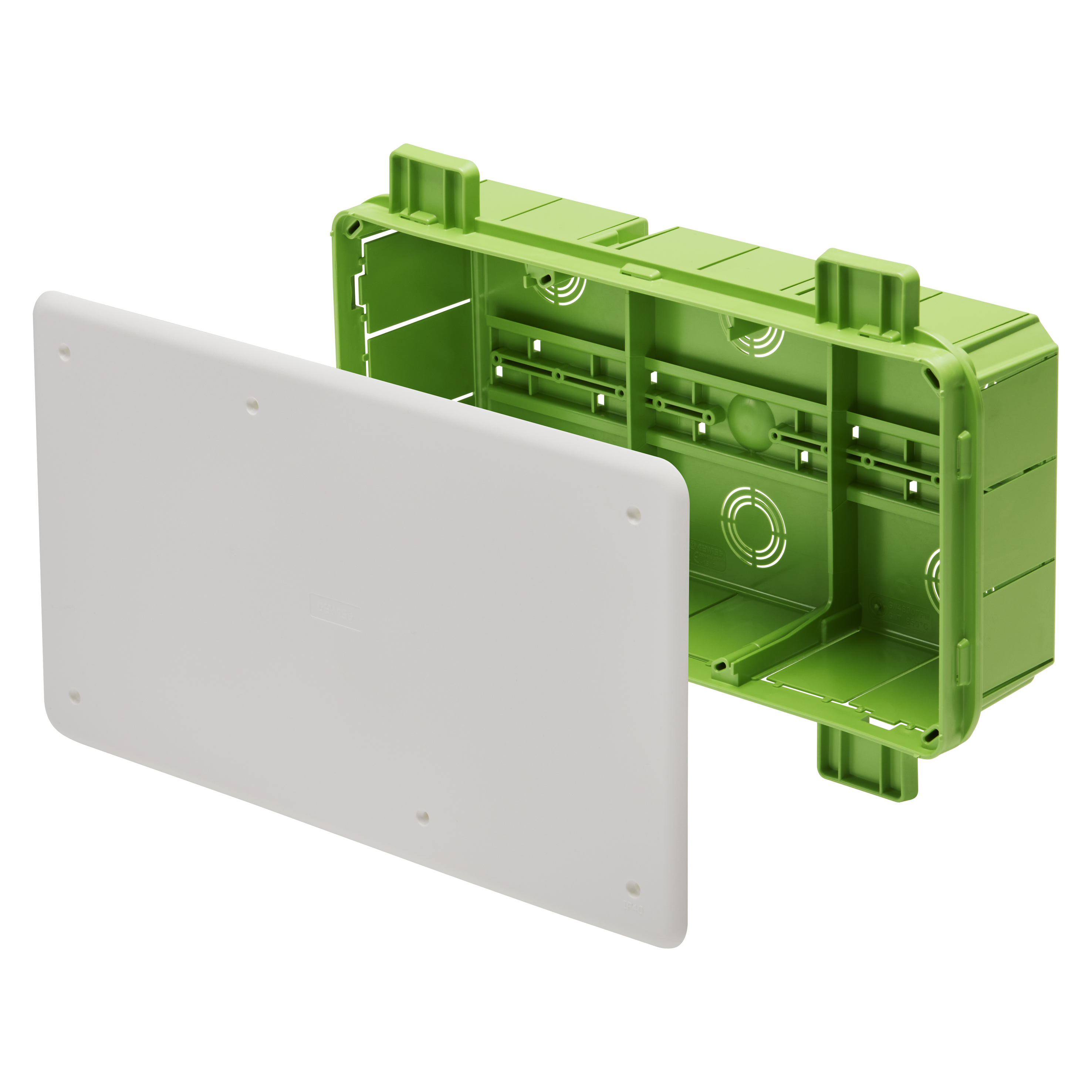 GREEN WALL Sistema da incasso per pareti leggere e cartongesso – Il più completo sistema di contenitori per pareti leggere e cartongesso; soluzioni brevettate Gewiss. Realizzato con tecnopolimeri Halogen Free e GWT 850°C. La serie comprende centralini e quadri di distribuzione fino a 72M; cassette di derivazione Serie 48 PTDIN GREENWALL con guida DIN integrata sul fondo, conformi alla Norma CEI 23-49, ideali per predisposizione e installazione di dispositivi domotici; scatole per serie civili e cassette per prese interbloccate.